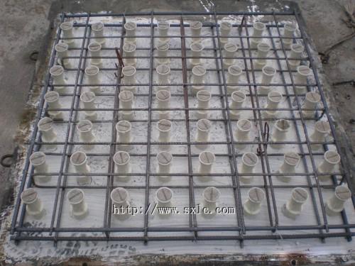 水泥混凝土預制濾板采用鋼模澆筑、原料采用325或425號水泥混凝土、砂石、經(jīng)嚴格配比后攪拌等制作工藝完成配料。濾板采用雙層鋼筋根據(jù)濾板的支撐點和受力方向進行不同的設計更新,保證混凝土強度等級和濾板質(zhì)量的要求。我公司制作的濾板參考混凝土行業(yè)和水處理行業(yè)相關參數(shù)并參考設計單位的要求合理布距預埋濾頭套筒、該套管全部采用全新ABS工程塑料制成。濾板配制鋼筋采用雙層雙向國標8號10號螺紋鋼筋,水泥采用C30高標號,灰砂石比例配比合理經(jīng)機械攪拌,立模澆筑經(jīng)高覆震動成型。